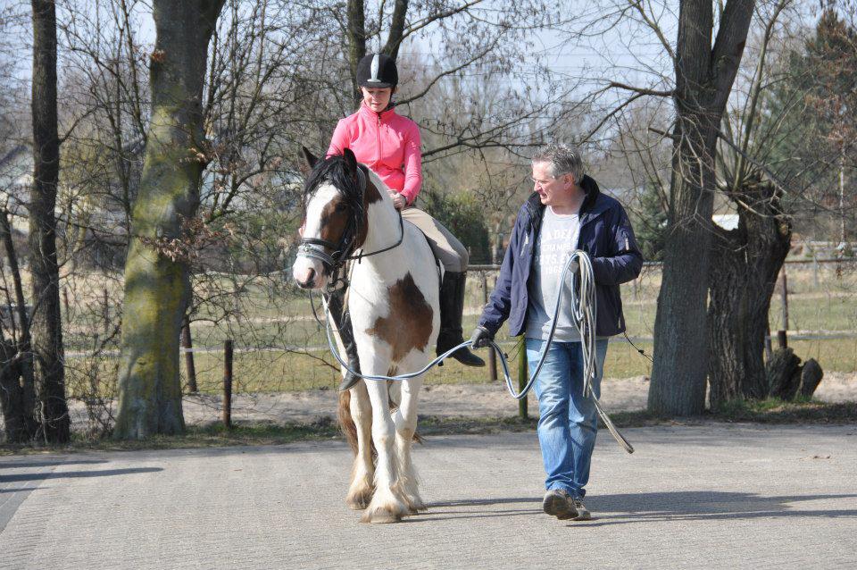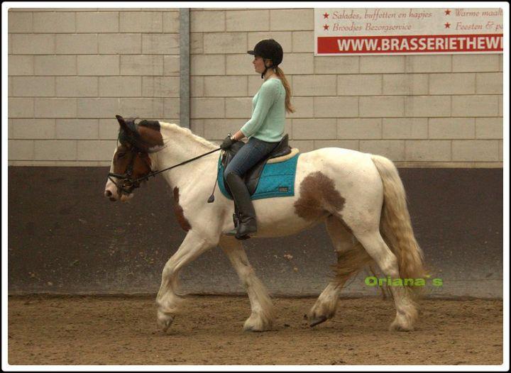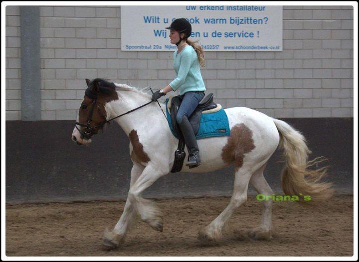 Na een paar maanden onder het zadel gereden te hebben en een paar keer op vreemd terrein te rijden (inclusief een proefje zonder galop op de Tinkerdagen), hebben we haar een paar maanden weggezet. Mijn moeder heeft daarna een freestylecursus gedaan met Meaghan zodat ze het longeren ook beter onder controle kreeg en toen ben ik ook weer begonnen met rijden.