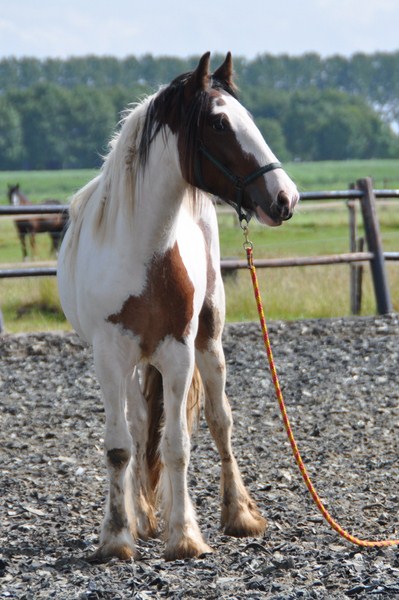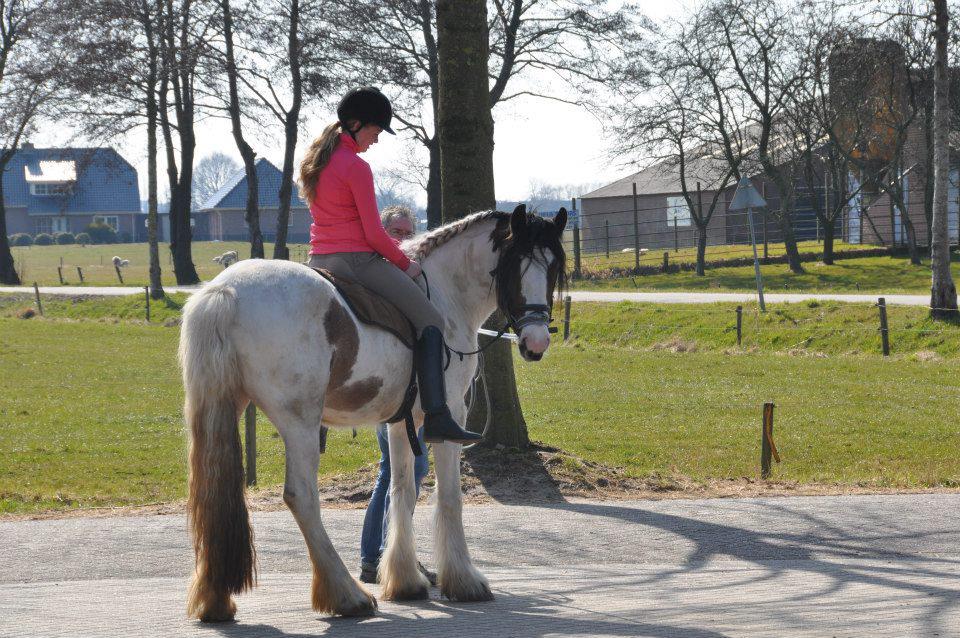 Na een paar maanden onder het zadel gereden te hebben en een paar keer op vreemd terrein te rijden (inclusief een proefje zonder galop op de Tinkerdagen), hebben we haar een paar maanden weggezet. Mijn moeder heeft daarna een freestylecursus gedaan met Meaghan zodat ze het longeren ook beter onder controle kreeg en toen ben ik ook weer begonnen met rijden.